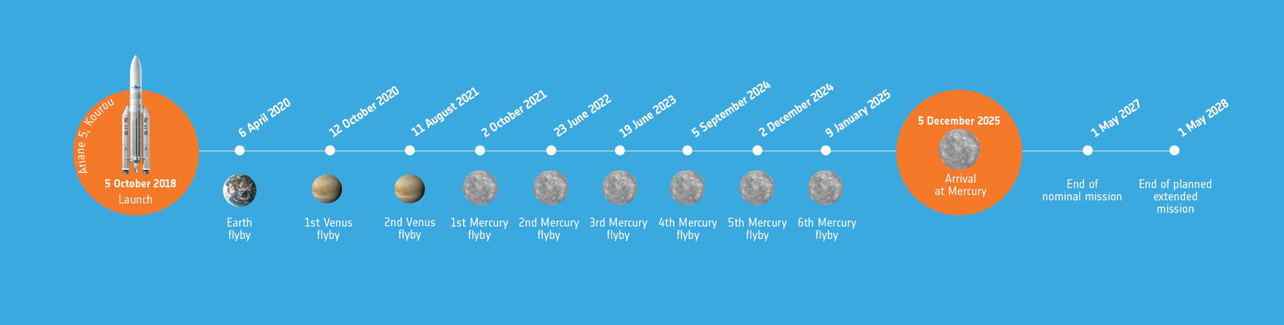 S’en suivra la mission scientifique nominale de mars 2026 à mai 2027, avec une prolongation jusqu’à mai 2028 voire 2029, durant laquelle les planétologues tenteront de résoudre les mystères tenaces de Mercure : Quelle est l’origine de son champ magnétique ? Pourquoi a-t-elle un si gros noyau métallique ? Une partie du noyau est-elle liquide ? Pourquoi a-elle eu un volcanisme explosif tardif ? Comment peut-on trouver des matériaux volatils à la surface d’une planète si proche du Soleil ?