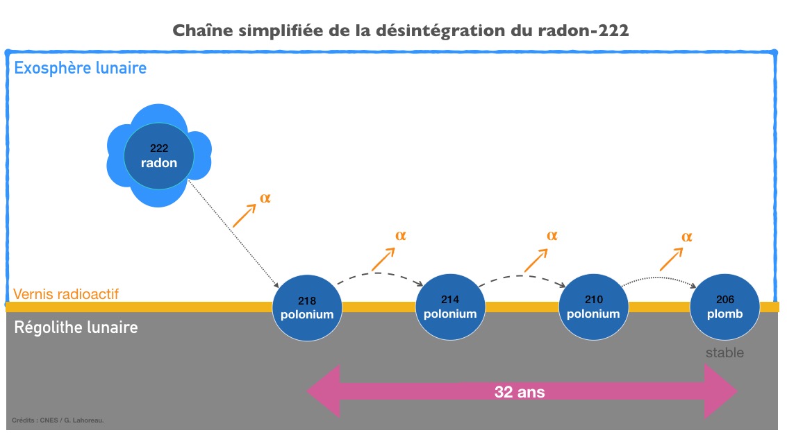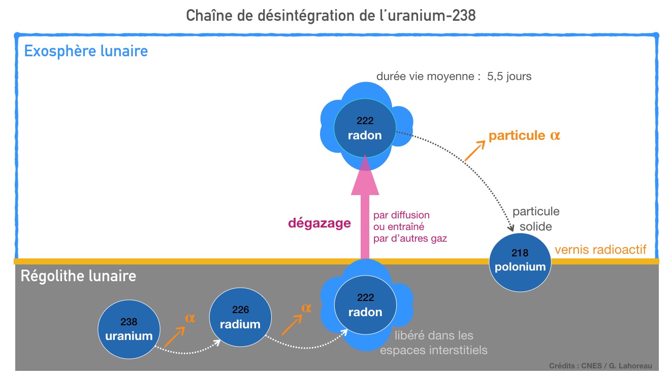Il ne peut provenir que du régolithe. Par ailleurs, les courtes durées de vie de ses isotopes (5,5 jours pour le radon-222 et seulement 1 min pour le radon-220) permettent de remonter plus facilement à la localisation de son émanation qu’avec l’argon-40, dont le temps de résidence dans l’exosphère est d’environ 25 jours » explique Pierre-Yves Meslin, chercheur à l’IRAP et investigateur principal (PI) de DORN.