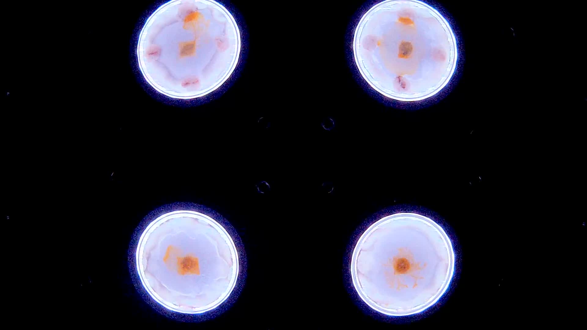 Protocole Exploitation : les blobs 1 et 2 se réveillent en même temps. On relève le premier petit mouvement 4h20 après que Thomas Pesquet ait humidifié les blobs.