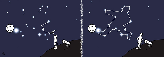 La nuit tombe et les 1eres étoiles apparaissent… 1, 100, 1 000…. En réalité, il y en a 200 000 000 000 dans notre galaxie, la Voie lactée. Mais à quelle distance se trouvent-elles ? Difficile à dire. D’ailleurs, pendant des siècles, la question a fait débat et ce n’est qu’en 1838 que l’astronome allemand Friedrich Bessel a calculé la 1ere distance d’étoile en utilisant la parallaxe (1). Il estime alors que l’étoile 61 de la constellation du Cygne se trouve à 100 000 milliards de km de la Terre ou 10,4 années-lumière (la valeur réelle est 11,2). Plus récemment, le satellite européen Hipparcos, lancé en 1989, a établi un catalogue de 120 000 étoiles. Tandis que le satellite Gaia, lancé le 19 décembre 2014, s’apprête à pulvériser ce record avec plus d’1 milliard d’étoiles (environ 1% des astres de notre galaxie) et 100 fois plus de précision.