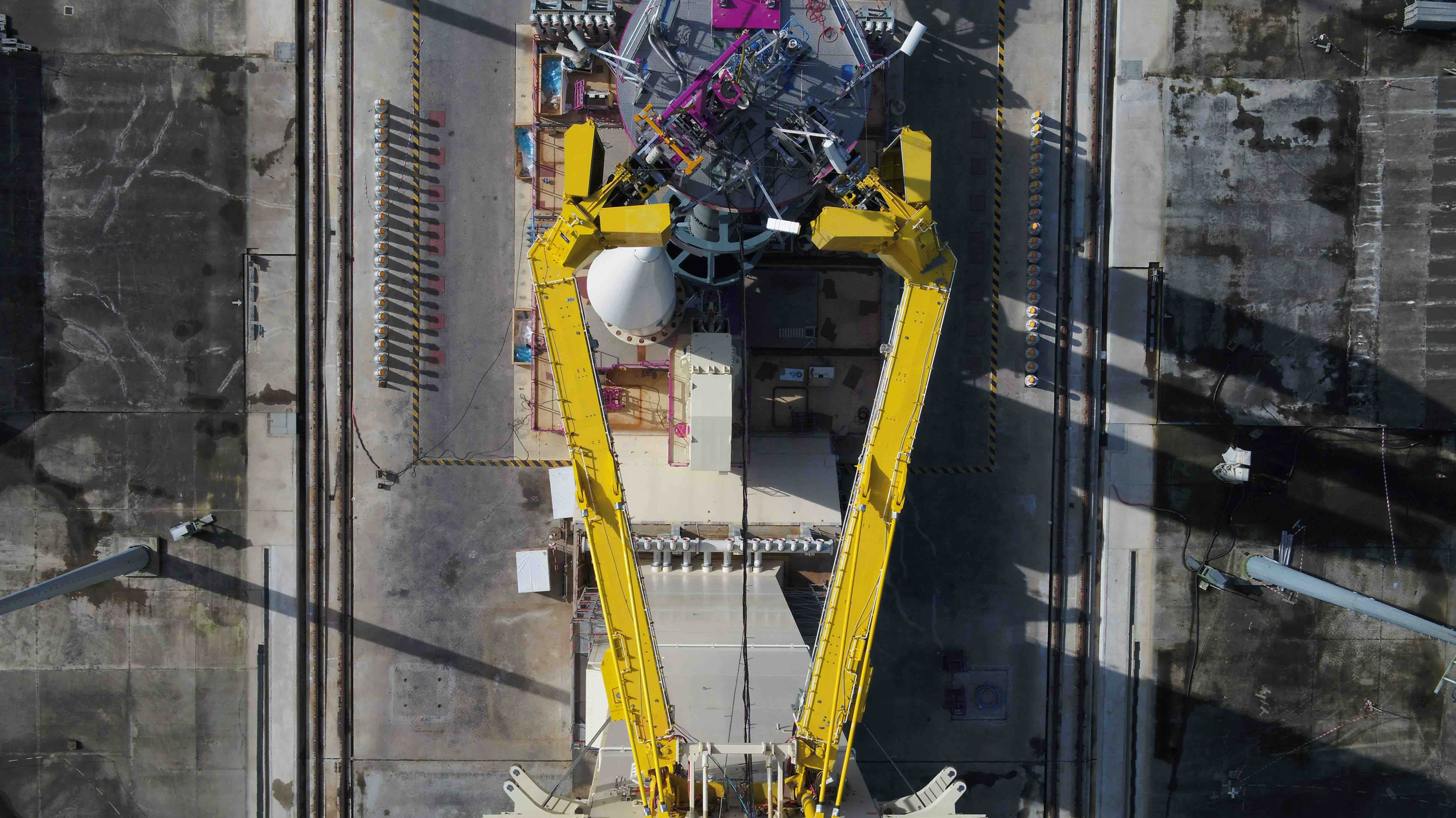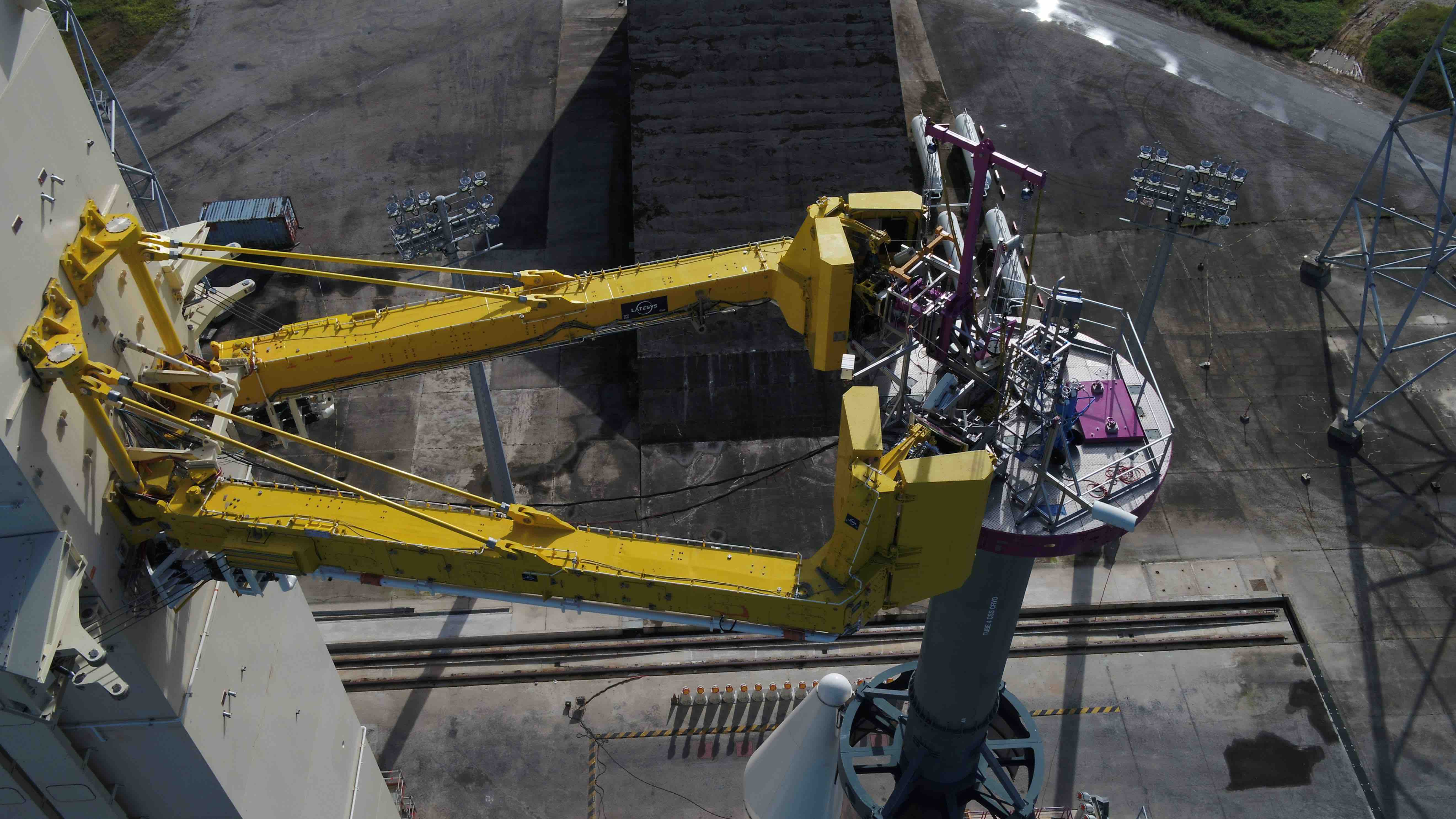 C’est la dernière étape préparatoire aux essais combinés d’Ariane 6. Les essais CCS Cryo (CCS pour cryogenic connection system) réalisés ce printemps sur la zone de lancement de l’ELA-4 ont pour objectif de tester en configuration représentative les liaisons fluides entre le sol et le lanceur. Plus précisément, il s’agit de créer une connexion entre les moyens d’avitaillement (les bras cryotechniques au niveau de l’étage supérieur ULPM et les caissons MANG au niveau du 1er étage LLPM) et une maquette du lanceur équipée d’une plaque d’interface représentative, et de faire une circulation d’hydrogène liquide à une température de -250°C pendant environ 2 heures. Cela permet de mettre en froid l’ensemble de l’équipement pour pouvoir évaluer l’influence de ces conditions sur les efforts supportés par la plaque d’interface et enfin de procéder à un largage comme cela sera réalisé avec le vrai lanceur lors du premier vol.