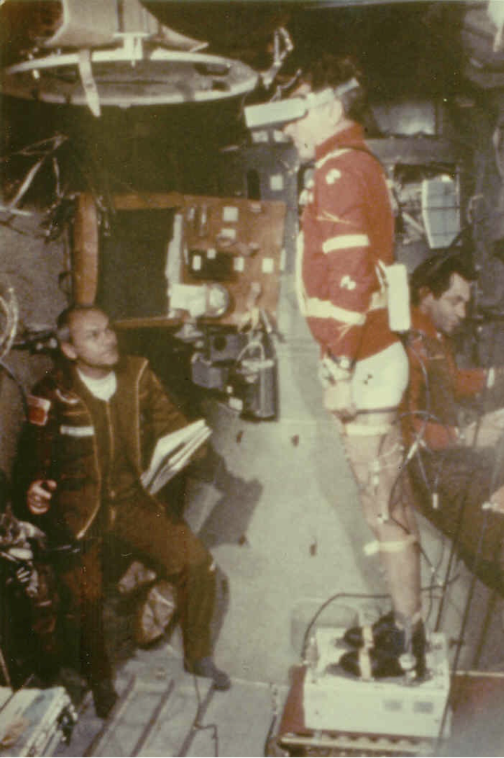En 1982 déjà avec Posture, nos chercheurs étudiaient l’influence de la vision sur le contrôle de l’équilibre en impesanteur. Les pieds attachés, Jean-Loup Chrétien tentait de montrer une cible en tendant le bras dans différentes conditions. De quoi montrer entre autres que lorsque l’astronaute perd l’équilibre même lorsqu’il flotte en impesanteur, son corps tente immédiatement de le redresser comme sur Terre !