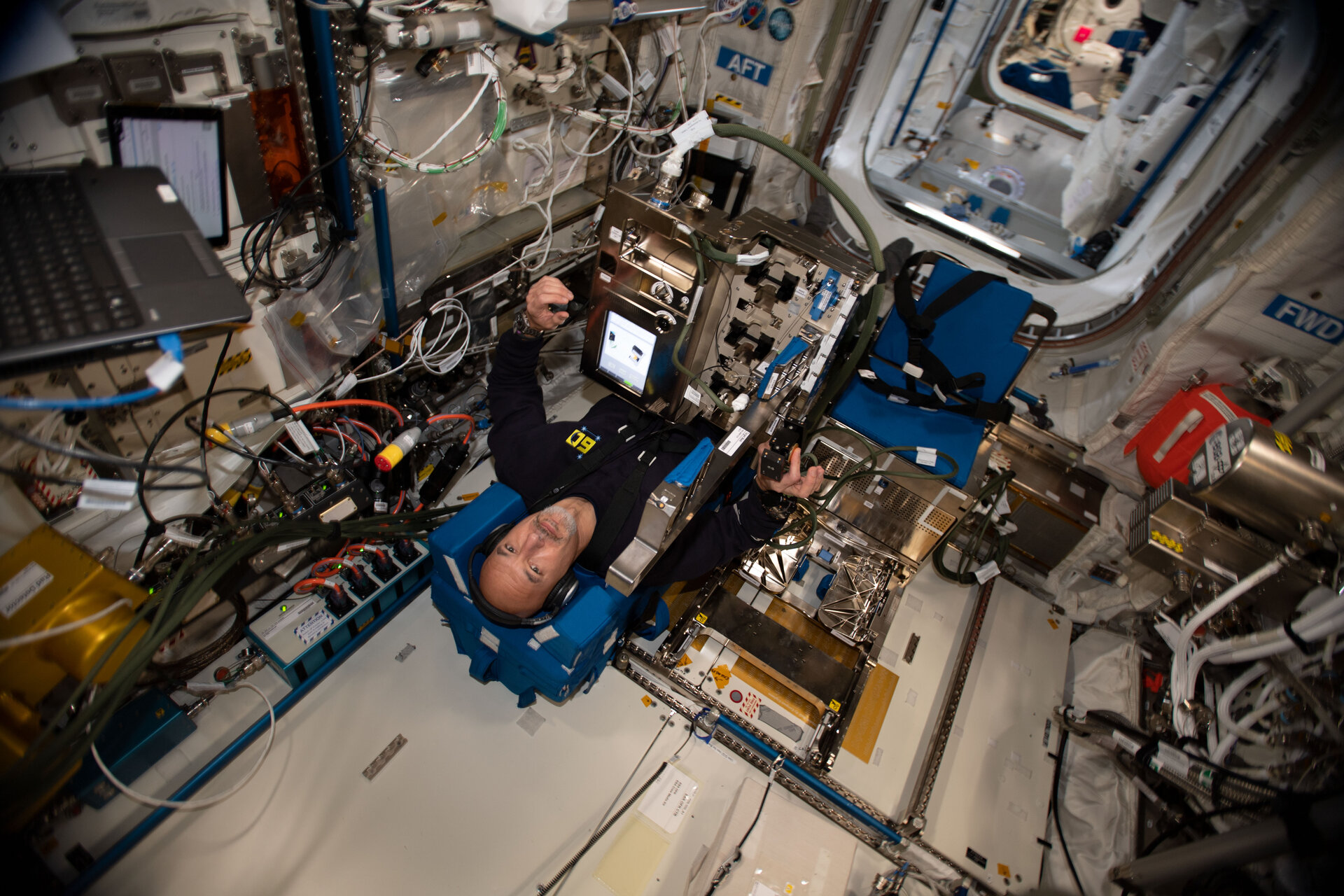 L’astronaute italien de l’ESA Luca Parmitano dans l’expérience GRIP en 2019. Crédits : ESA.
