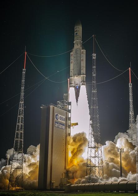 Lors du 109ème lancement d’Ariane 5, le 15 août 2020, le système Kassav était embarqué pour la première fois à bord. Aujourd’hui, il équipe systématiquement la fusée. Crédits : CNES/ESA/Arianespace/Optique Vidéo CSG/S Martin, 2020.