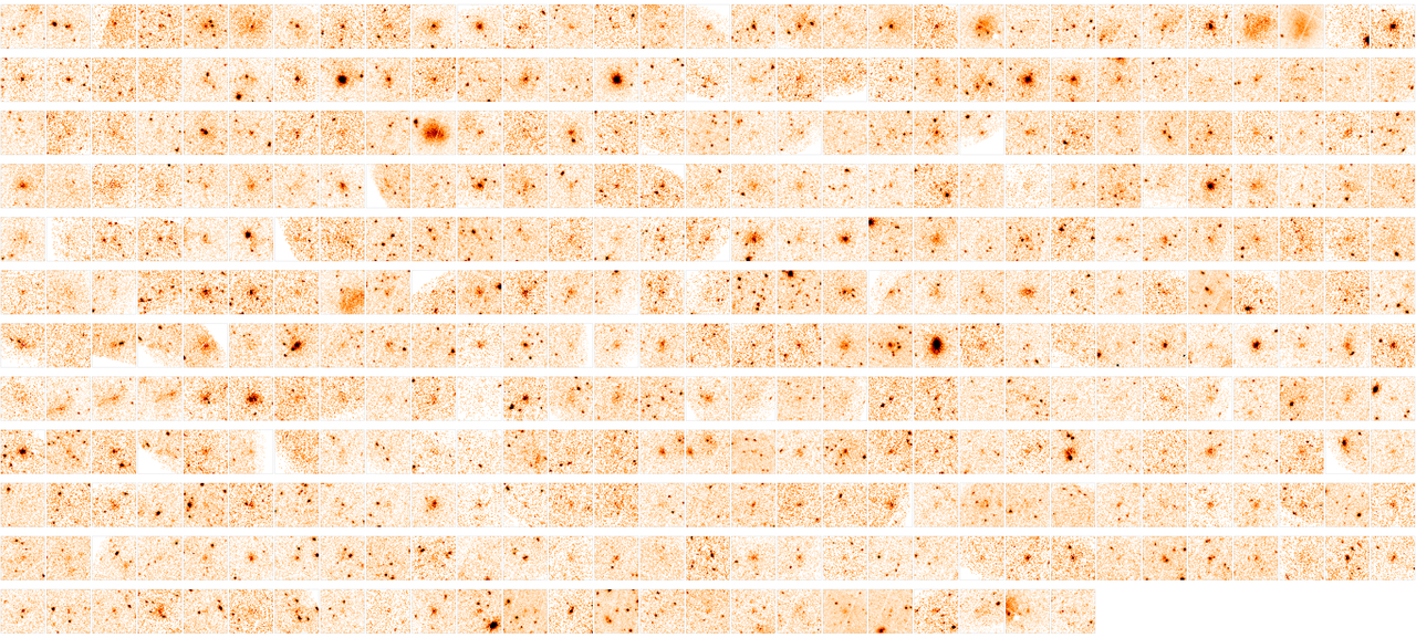 Les 365 amas de galaxies du 2e catalogue du sondage XXL classés par ordre croissant de distance. Le 1er amas de galaxies (en haut à gauche) se trouve à environ 0,4 milliards d’années lumière de la Voie Lactée et le dernier (en bas à droite) à 5,2 milliards d’années lumière. Crédits : ESA/XMM-Newton/XXL Survey.