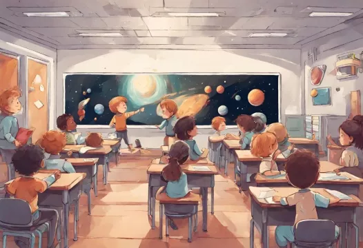 Un ingénieur parle de l'espace à des élèves dans une salle de classe
