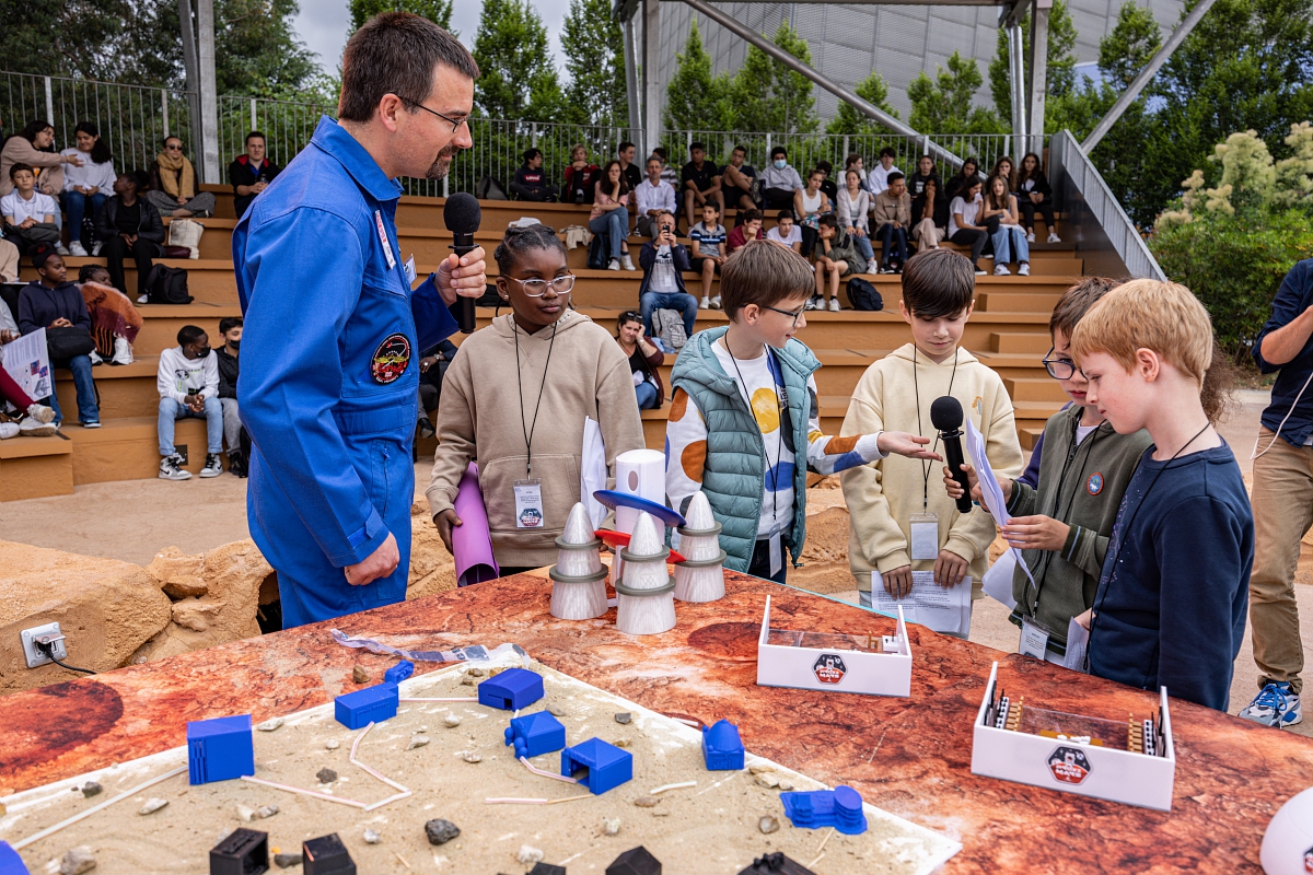 En mai 2023, une journée de restitution sur le terrain martien de la Cité de l’espace à Toulouse (31) permettra d’exposer les productions des classes, qui présenteront leurs projets aux autres classes.