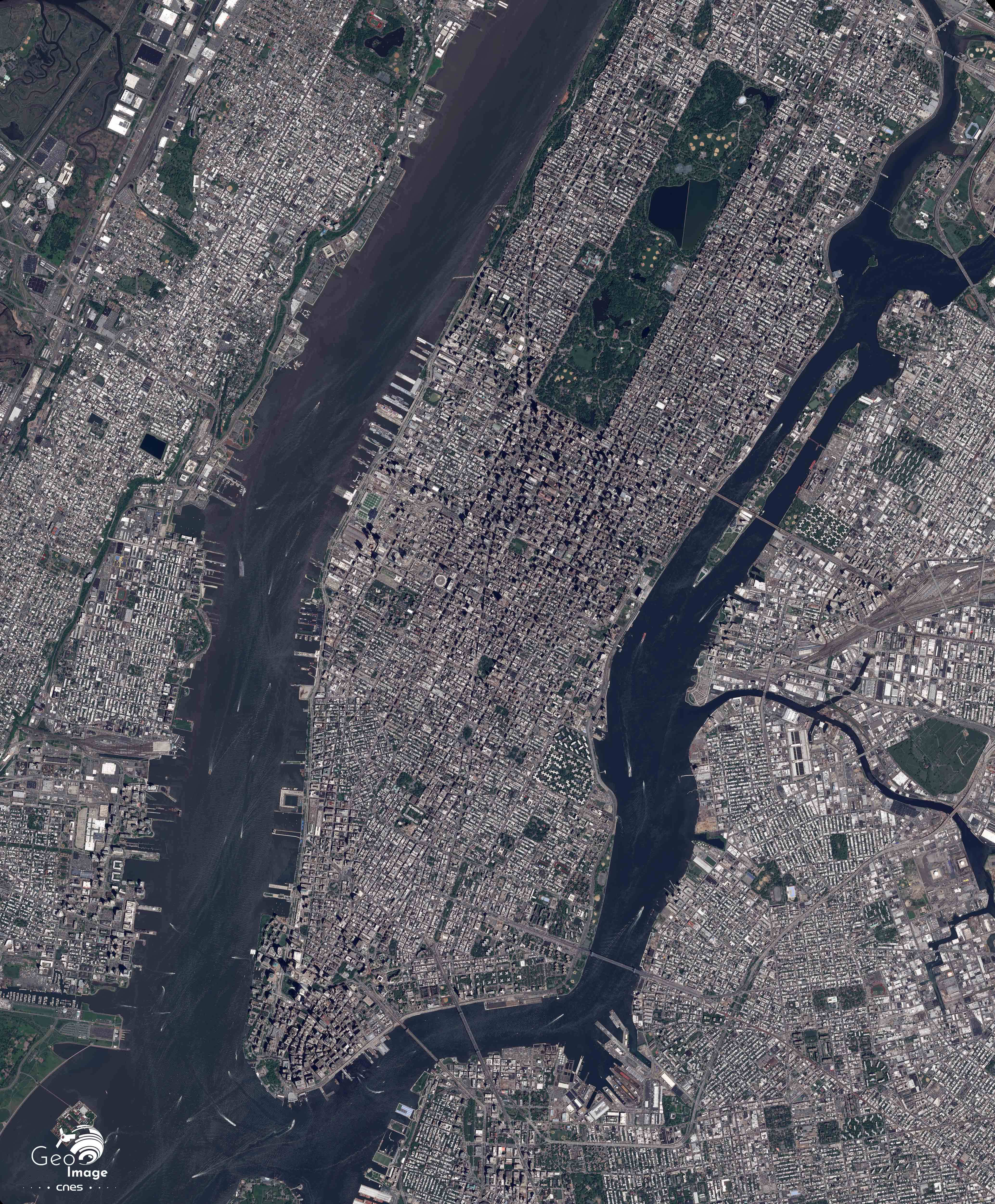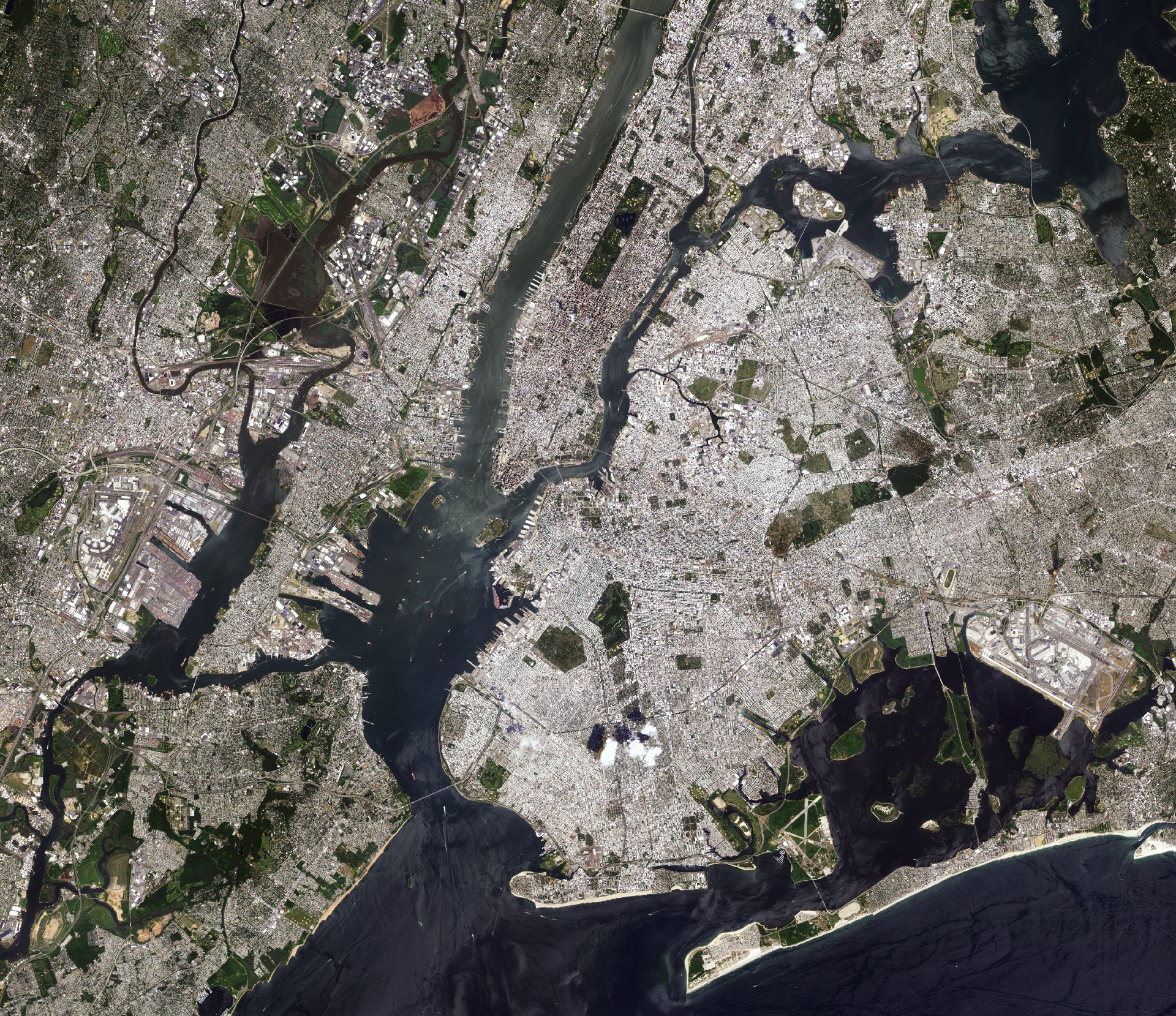 New-York City, la plus grande ville des États-Unis vue par le satellite Sentinel 2, le 17/07/2015. Cette image a une définition de 10m au sol